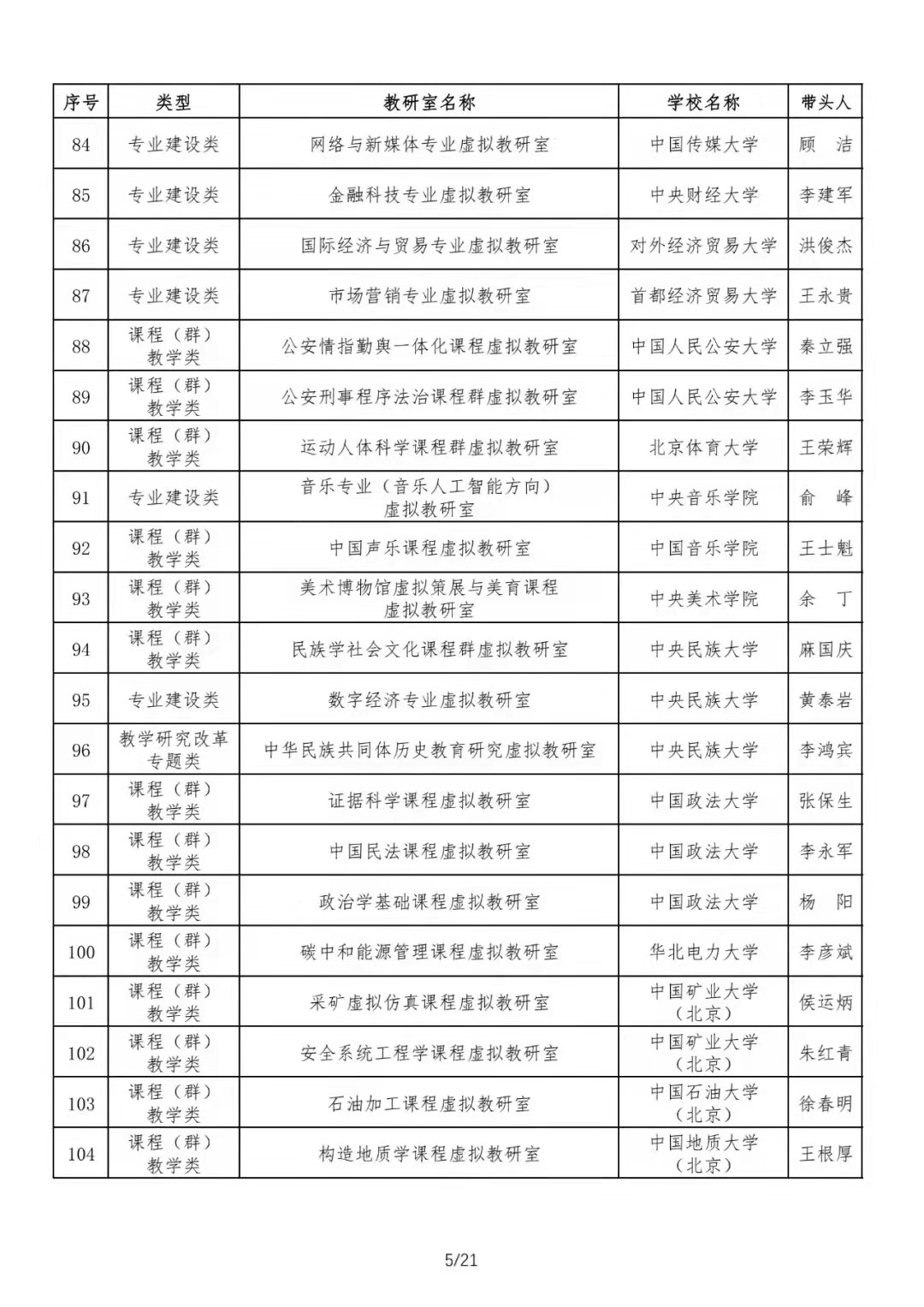 教育部办公厅关于公布首批虚拟教研室建设试点名单的通知
