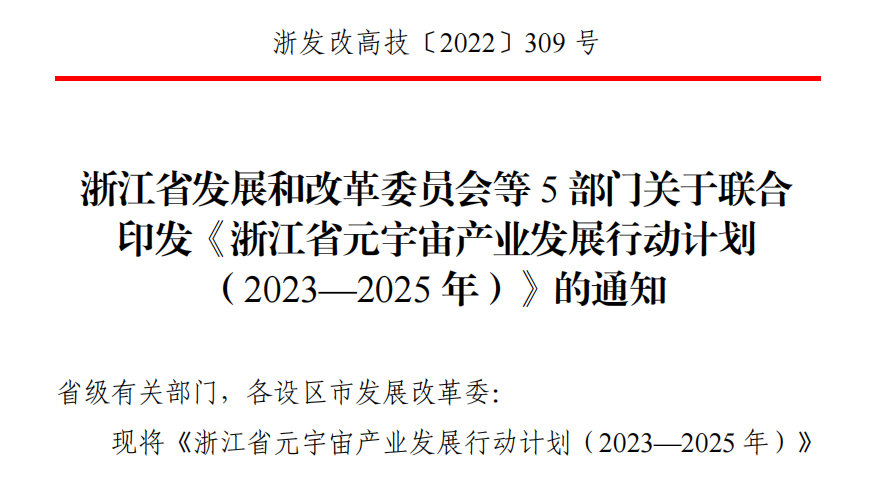 浙江省元宇宙产业发展行动计划(2023—2025 年)