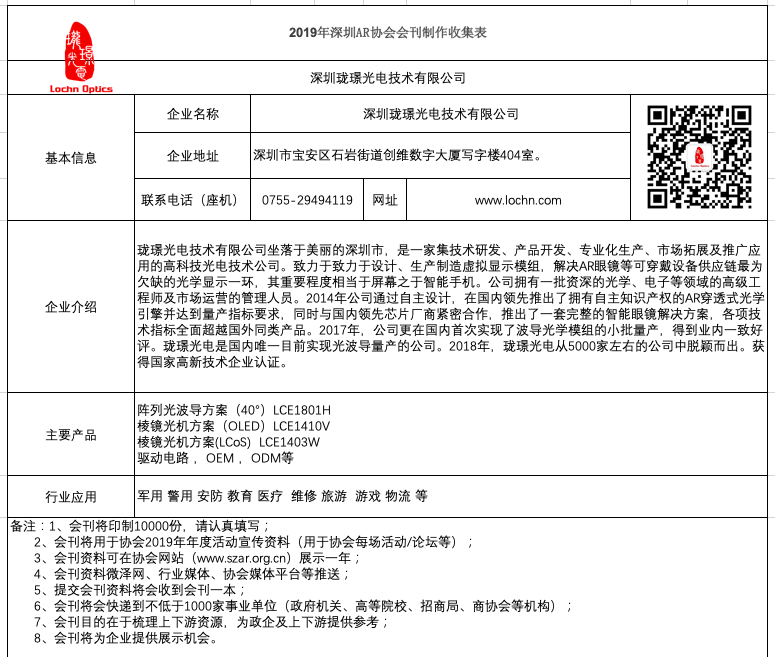 2、填写2019年深圳AR协会会刊制作收集表,然后打印收集表,盖章并将扫描件使用微信或邮箱发送秘书处曾先生。